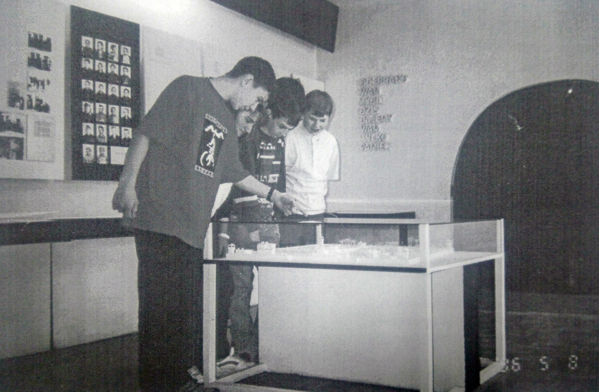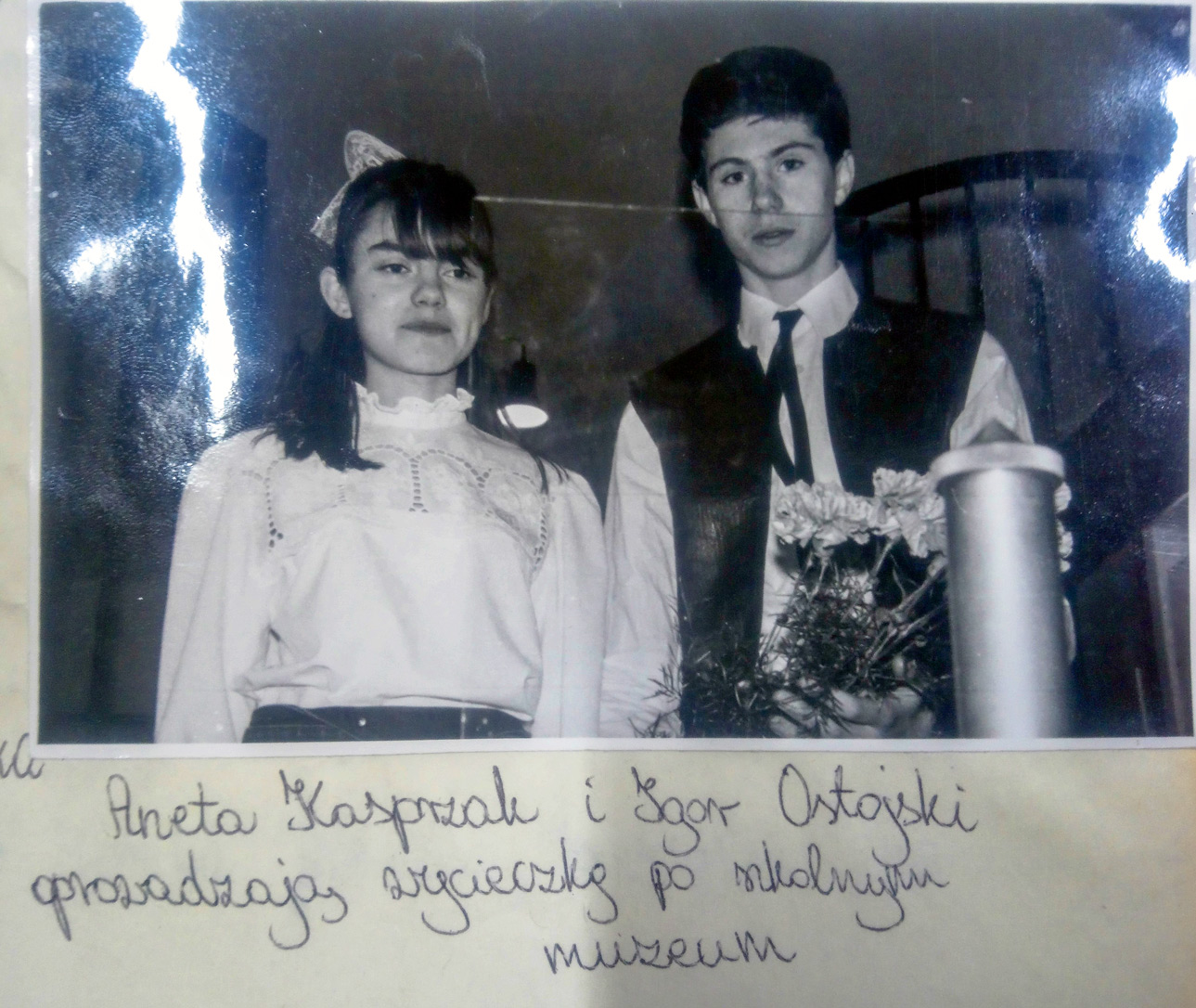 zdjęcie: Medal dla szkoły). Napisano też o zwycięstwie w Wojewódzkim Konkursie Izb Pamięci Narodowej i Tradycji Szkoły w 1991 roku (zob. zdjęcie: Konkurs izb). Na podkreślenie zasługuje także fakt, iż w trakcie Święta Szkoły (pisownia zachowana za autorami księgi) 22 kwietnia 1988 roku wręczono Nagrody Opiekuna Miejsc Pamięci Narodowej dziewięciorgu przewodnikom po szkolnym muzeum (wśród nich był tylko jeden chłopiec, ale w tym konkursie na ogół zwyciężały dziewczęta). W omawianej publikacji znajduje się tylko jedno zdjęcie – dwojga przewodników po Izbie (zob. zdjęcie: Przewodnicy zdjęcie z izby).
